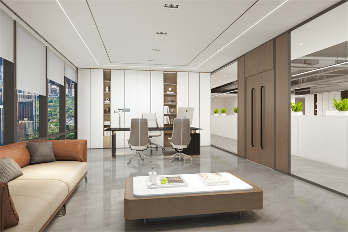 1、首先最重要的是門窗的顏色,辦公室裝修講究空間相統一,偶爾的跳色屬于一種設計手法,但是其整體色彩要相對統一和諧。所以在挑選門窗時如果有墻面材質的話,要讓其顏色與墻面材料顏色相近;要與地面協調使其顏色與之相鄰;與家具色彩要相和諧保持同樣的深色或者淺色調。