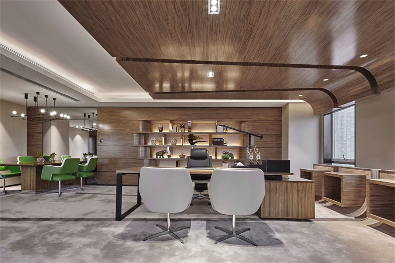 再次就是燈光了,燈光上面可以選擇那種明亮,有梯度的燈光照射,通過燈光的層次感照射也會提高辦公室的視覺擴大感。