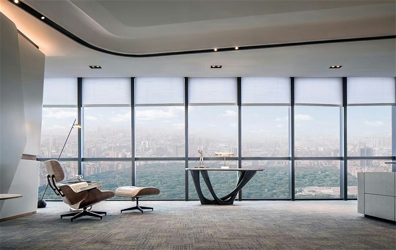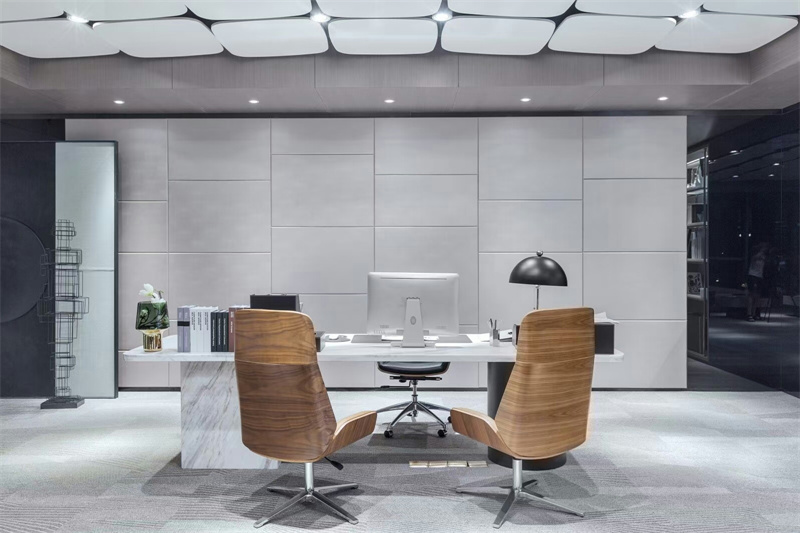 辦公室裝修中的中式設計非常注重空間的層次感,這種傳統的審美理念在中式辦公室設計中得到了全新的詮釋。根據辦公空間的大小,可以做一個單獨的空間功能!采用“啞巴嘴”和“古董架子”來區分;在需要隔絕視線的地方,可以用中式的屏風或者窗框。通過這種新的分隔方式,你可以體現出辦公室的層次之美!