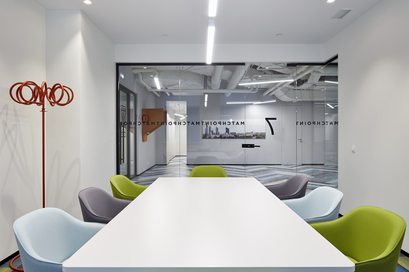 因為1200平米的辦公空間有限,所以部分區域用隔音玻璃做隔斷,既能阻隔空間,又能讓每個空間都有自己的私密性。在設計會議室的時候,布局要簡單一些,讓更好的創意在舒適的空間里發揮出來,提高工作效率。