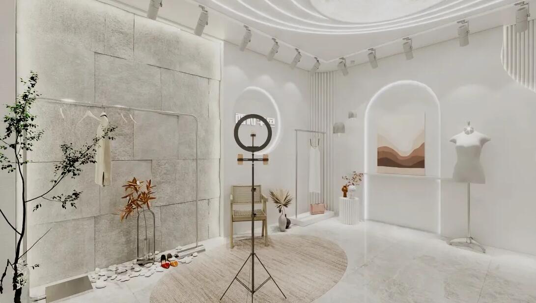 場地布置的很好,秒變高,直播布景干凈,溫馨,有文化。相對于衣服直播間的裝修風格,主要是為了保證旺季產品的順利展示。所以衣服直播間裝修風格簡單,但是場地要大一點,這樣鏡頭感會更好,燈光效果也很重要。服裝工作室的整體布局是由綠色和白色組成的。主色調,另外漆皮鐵藝是北歐風的必備元素,給人北歐風小清新的感覺。新鮮的綠色植物絕對不可或缺。不管是真是假,小盆栽和花是一定要有的,可以起到很好的裝飾作用。直播間必須光線均勻,補光燈采用標準白光,營造自然光感。